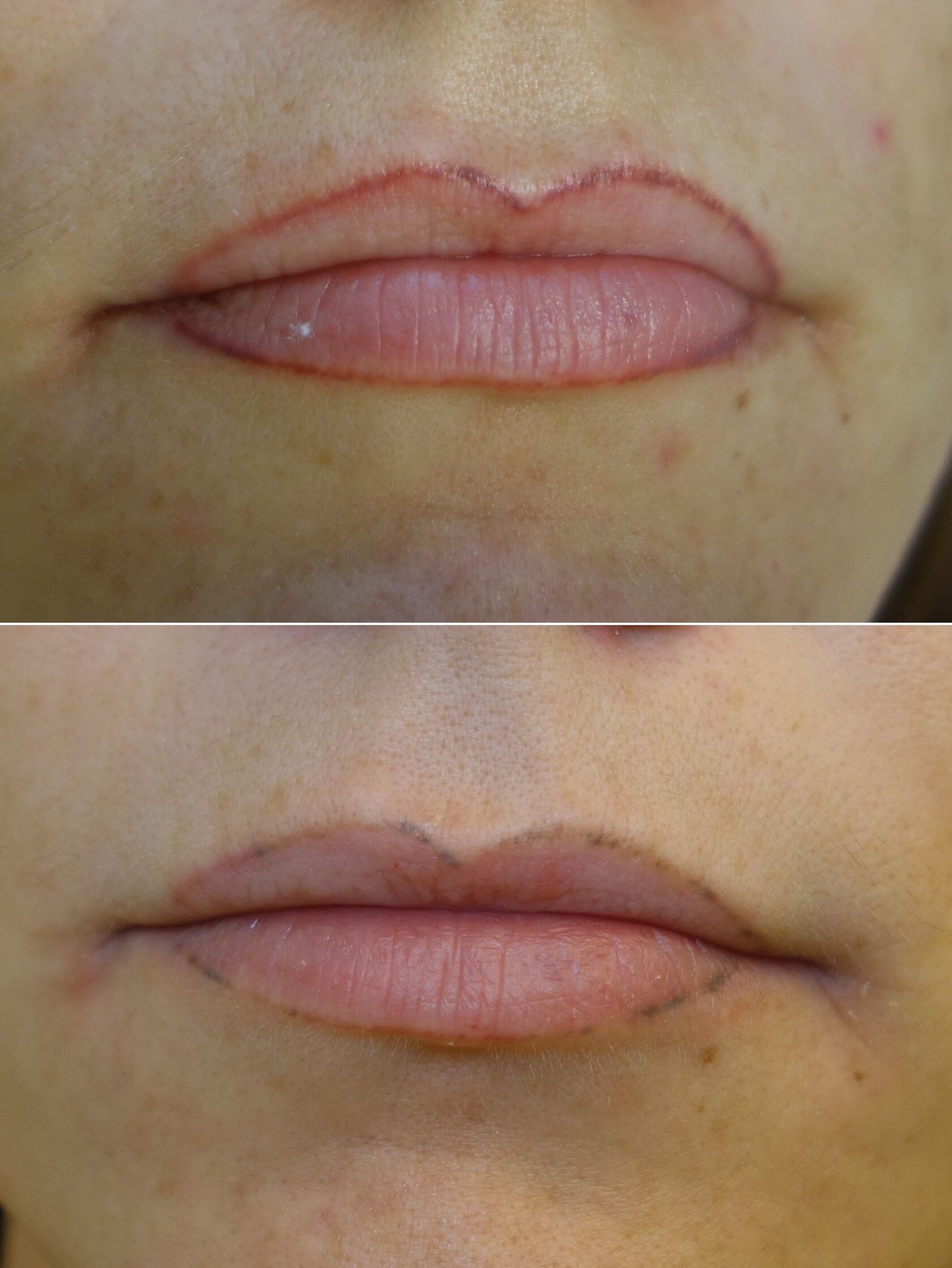 Впоследствии такой серый пигмент обрабатывается повторно и выводится. Часто это происходит именно при обработке перманента губ, который после первого сеанса чернеет. В цветах для губ обычно присутствует большое процентное содержание белого пигмента. .